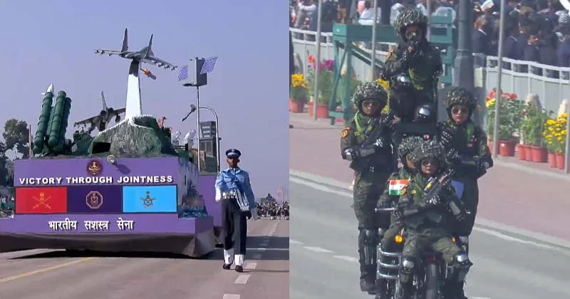 இதனை தொடர்ந்து, ‘ஆபரேஷன் சிந்தூர்’ ராணுவ நடவடிக்கையின்போது பாதுகாப்பு படையினர் பயன்படுத்திய பிரதான ஆயுத அமைப்பின் மாதிரி வடிவங்கள் அணிவகுத்து சென்றன. உள்நாட்டில் தயாரிக்கப்பட்ட துருவகை ஹெலிகாப்டர்கள், இந்தியாவின் நவீன பாதுகாப்பு தளவாடங்களின் மாதிரிகளை கண்டு பார்வையாளர்கள் பரவசமடைந்தனர். மேலும், சக்தி வாய்ந்த பிரமோஸ், ஆகாஷ் ஏவுகணைகள், ஆளில்லா விமானங்கள், ட்ரோன்களின் அணிவகுப்பு மற்றும் DRDO சார்பில் ஏவுகணை தடுப்பு வாகனத்தின் மாதிரிகளும் அணிவகுத்து சென்றன.