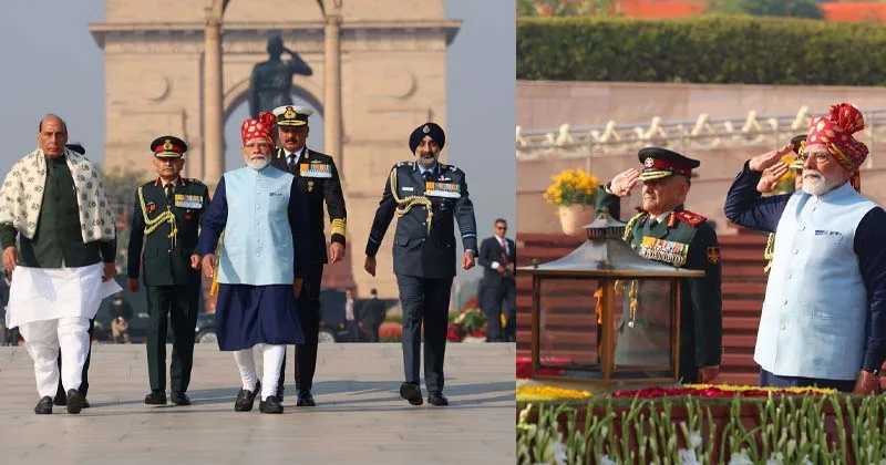 குடியரசு தினத்தையொட்டி போர் நினைவிடத்தில் பிரதமர் மோடி மரியாதை!