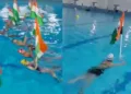 தேசியக் கொடியை ஏந்தியபடி நீச்சலடித்து இளம் வீரர்கள் அசத்தல்!