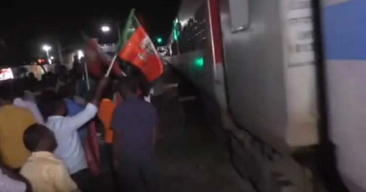 அதன்படி, மணப்பாறை ரயில் நிலையம் வந்த அந்யோதயா விரைவு ரயிலை வரவேற்றும், பிரதமர் மோடி வாழ்க என முழக்கம் எழுப்பியும் பாஜகவினர் வரவேற்றனர். இதற்கு போட்டியாக, ராகுல் காந்தி வாழ்க என்று காங்கிரசாரும், எம்பி துரை வைகோவிற்கு நன்றி தெரிவித்து மதிமுகவினரும் கோஷம் எழுப்பினர்.