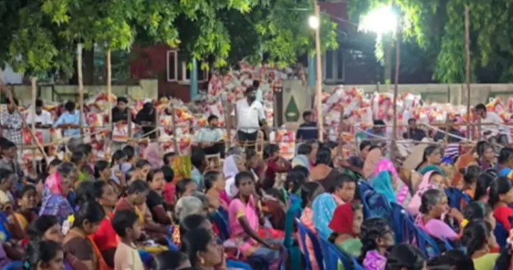 ராமநாதபுரம் சட்டமன்ற தொகுதிக்குட்பட்ட ராமேஸ்வரத்தில் திமுக பொதுக்கூட்டம் நடைபெற்றது. இதில் பங்கேற்க அழைத்து வரப்பட்ட பெண்களுக்கு திமுக எம்எல்ஏ காதர்பாட்ஷா முத்துராமலிங்கம் பரிசு பொருட்களை வழங்கியதாக புகார் எழுந்துள்ளது.