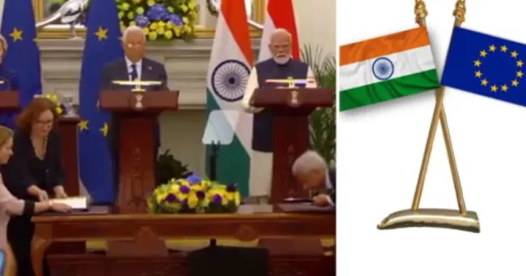 இந்தியா – ஐரோப்பிய யூனியன் இடையே தடையில்லா வர்த்தக ஒப்பந்தம் பிரதமர் மோடி முன்னிலையில் கையெழுத்தானது.