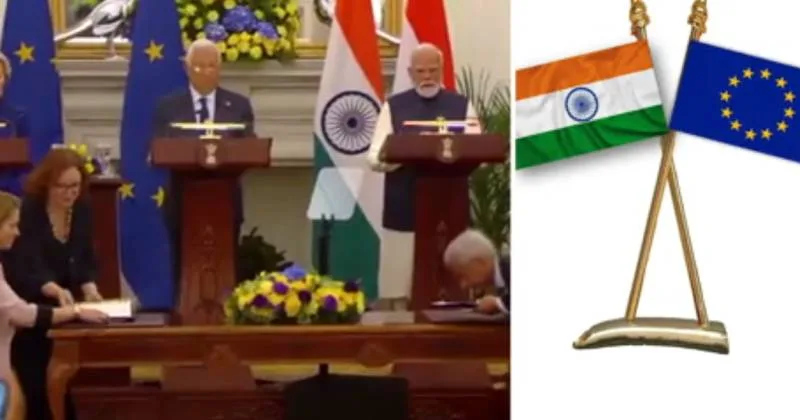 இந்தியா – ஐரோப்பிய யூனியன் இடையே தடையில்லா வர்த்தக ஒப்பந்தம் பிரதமர் மோடி முன்னிலையில் கையெழுத்தானது.