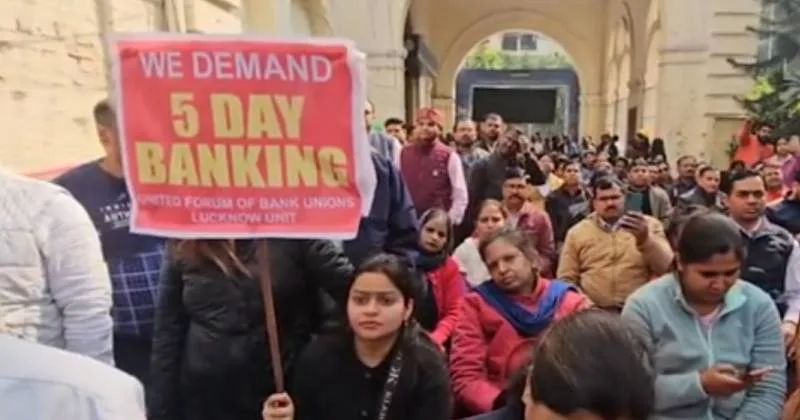 நாடு முழுவதும் உள்ள வங்கி ஊழியர்கள், வாரத்திற்கு 5 நாட்கள் வேலை என்ற நீண்டகால கோரிக்கையை வலியுறுத்தி வேலைநிறுத்தப் போராட்டத்தில் ஈடுபட்டனர்.