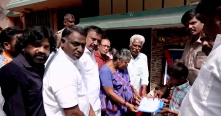 திருப்பரங்குன்றம் மலையில் தீபம் ஏற்ற வலியுறுத்தி உயிர்நீத்த பூர்ண சந்திரனின் குடும்பத்திற்கு தமிழக பாஜகவின் அயலக பிரிவு சார்பில் 2 லட்சம் ரூபாய் நிதியுதவி வழங்கப்பட்டது
