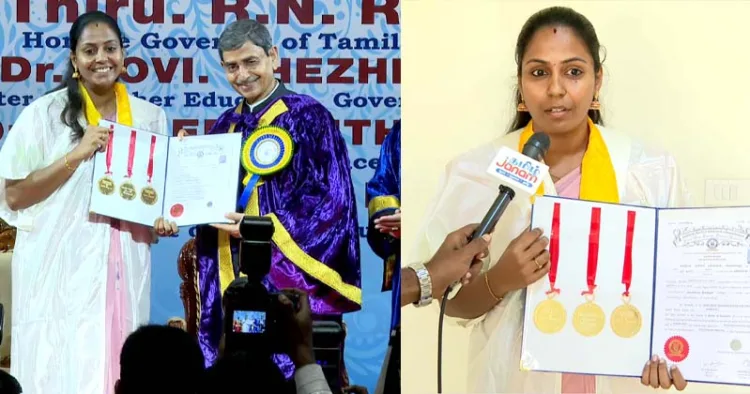 விழாவில் கோவையைச் சேர்ந்த சசிகலா என்ற மாணவி, எம்.எட். பட்டப்படிப்பில் பல்கலைக்கழக அளவில் முதலிடம் பிடித்துத் தங்கப்பதக்கம் வென்றார்.