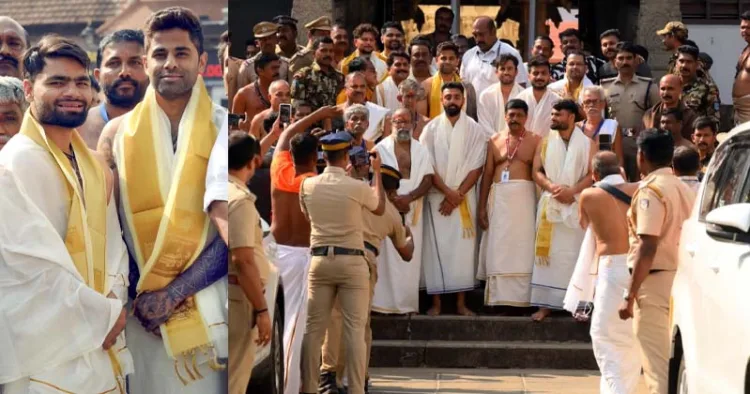 பாரம்பரிய உடையான வேட்டி அணிந்து வழிபட்ட இந்திய கிரிக்கெட் வீரர்கள் தொடர்பான புகைப்படங்கள் சமூக வலைதளங்களில் வைரலாகி உள்ளது.