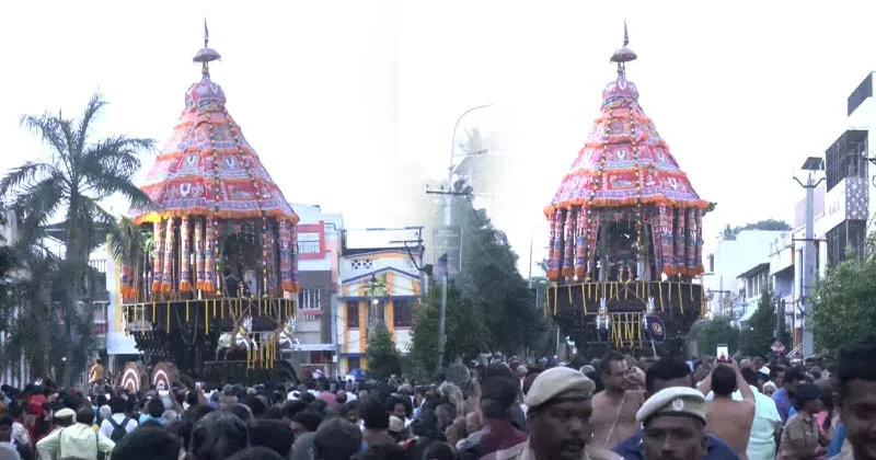 தொடர்ந்து நான்கு உத்தர வீதிகளிலும் திரளான பக்தர்கள் ஒன்றுகூடி பக்தி கோஷமிட்டுவாறு தேரை வடம் பிடித்து இழுத்தனர்.