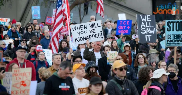 இதற்கு எதிர்ப்பு தெரிவித்து அங்கு நாடு முழுவதும் தொடர் போராட்டம் நடந்து வருகிறது. கடந்த வாரத்தில் மினசோட்டாவில் உள்ள ஐஸ் அலுவலகம் முன்பு போராடிய அலெக்ஸ் பிரெட்டி என்பவர் அதிகாரிகளால் சுட்டு கொல்லப்பட்டார்.