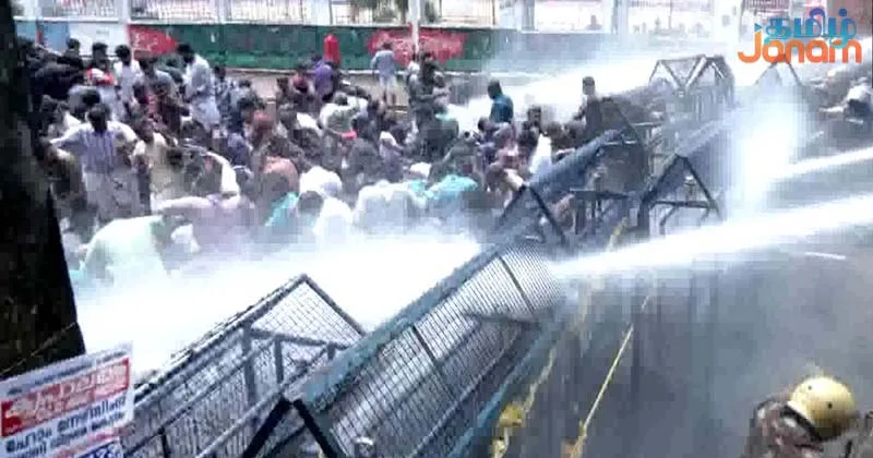 அப்போது தடுப்புகள் அமைத்து அவர்களை தடுத்து நிறுத்திய போலீசார், போராட்டக்காரர்களை கலைக்க தண்ணீரை பீய்ச்சி அடித்தது.