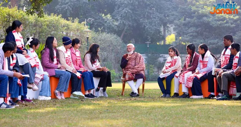 டெல்லியில் நடந்த பரிக்ஷா பே சர்ச்சா நிகழ்ச்சியின் 9வது பதிப்பின்போது பிரதமர் மோடி மாணவர்களுடன் கலந்துரையாடினார்.