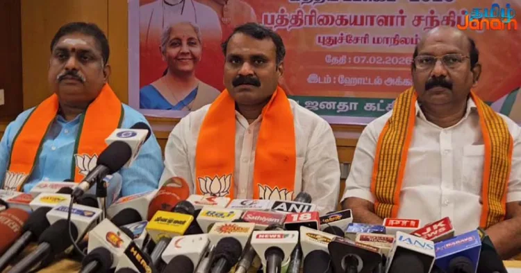 புதுச்சேரியில் மத்திய பட்ஜெட் தொடர்பாக விளக்கமளித்த மத்திய அமைச்சர் எல்.முருகன் செய்தியாளர்களை சந்தித்தார்.