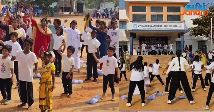தூத்துக்குடி மாவட்டம் கோவில்பட்டியில் திரைப்பட பாடல்களுக்கு சுமார் ஒரு மணி நேரம் இடைவிடாமல் மாணவர்கள், பெற்றோர்கள் நடனமாடினர்.