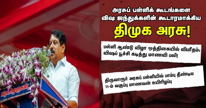 ஏழை எளிய மாணவர்கள் படிக்கும் பள்ளிகள் தானே, விஷப்பூச்சிகளும் பாம்புகளும் ஊர்ந்தால் என்ன, மேற்கூரை இடிந்து விழுந்தால் என்ன, மதிய உணவில் புழு நெளிந்தால் என்ன என்று அலட்சியம் காட்டும் அறிவாலய அரசால் தமிழக மாணவர்கள் பலியானது போதும் என்றும் அவர் கூறியுள்ளார்.