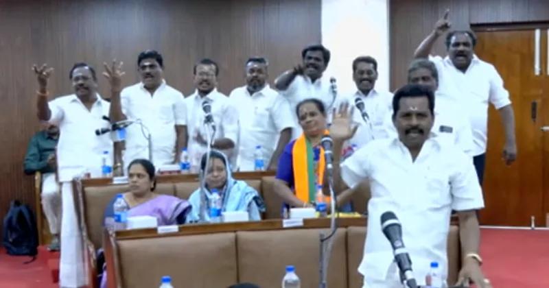 அப்போது வாக்குவாதத்தில் ஈடுபட்ட திமுக கவுன்சிலர்கள் புகைப்படத்தை கிழித்தெரிந்து அடாவடியில் ஈடுபட்டனர். பின்னர் பாஜக கவுன்சிலர் பூமாஸ்ரீ அவை காவலர்களால் வெளியேற்றப்பட்டார்.