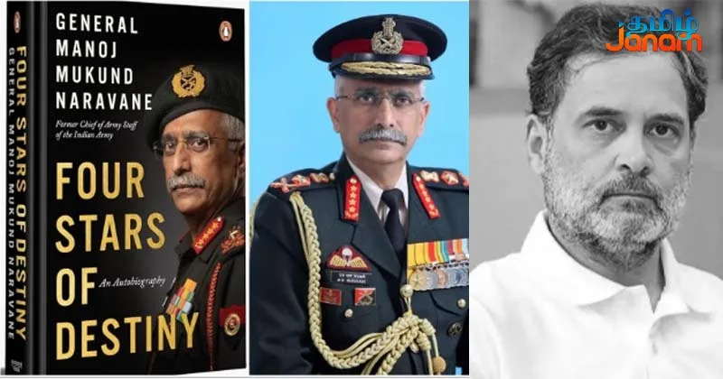 முன்னாள் ராணுவ தளபதி நரவானே, ‘Four Stars of Destiny’ என்ற புத்தகத்தை எழுதி உள்ளார். இந்த புத்தகம் இன்னும் வெளியிடப்படவில்லை. இந்த புத்தகத்தை வைத்து மக்களவையில் ராகுல் மத்திய அரசை விமர்சித்து பேசினார். இதற்கு மத்திய அரசு தரப்பில் கடும் கண்டனம் தெரிவிக்கப்பட்டது. அதிகாரப்பூர்வமாக வெளியாகாத இந்த புத்தகம் சமூக ஊடகங்களில் வெளியானது குறித்து டெல்லி போலீசார் வழக்குப்பதிவு செய்து விசாரணை நடத்தி வருகின்றனர். முன்னதாக, இந்த புத்தகத்தின் உரிமையை வைத்துள்ள பென்குயின் ரேண்டம் ஹவுஸ் நிறுவனம், சமூக ஊடகத்தில் பதிவு ஒன்றை வெளியிட்டு இருந்தது.