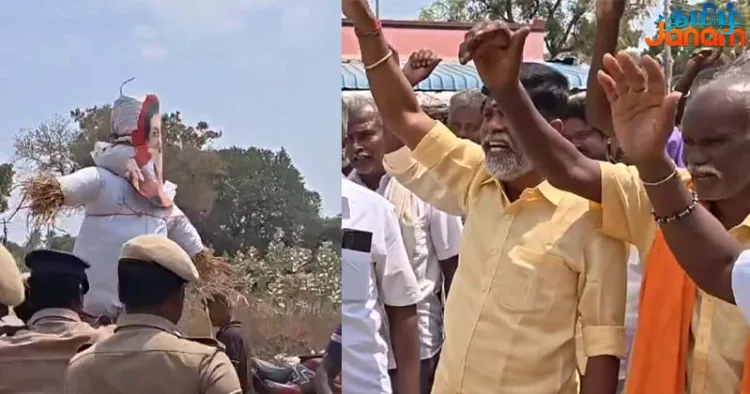 அப்போது அமைச்சர் மூர்த்தியின் உருவபொம்மையை கிராம மக்கள் எரிக்க முயன்ற நிலையில், பாதுகாப்பு பணியில் இருந்த போலீசார் தடுத்து நிறுத்தி, உருவ பொம்மையை எடுத்து சென்றனர்.