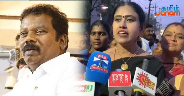 ஆர்ப்பாட்டத்திற்குப்பின் பேசிய விஜயதரணி, குழு அமைத்து 70 நாட்களாகியும் திமுக தங்களிடம் பேசவில்லை என செல்வப்பெருந்தகை கூறியிருப்பது காங்கிரஸ் கட்சியின் பரிதாப நிலையை காட்டுவதாக கூறினார்.