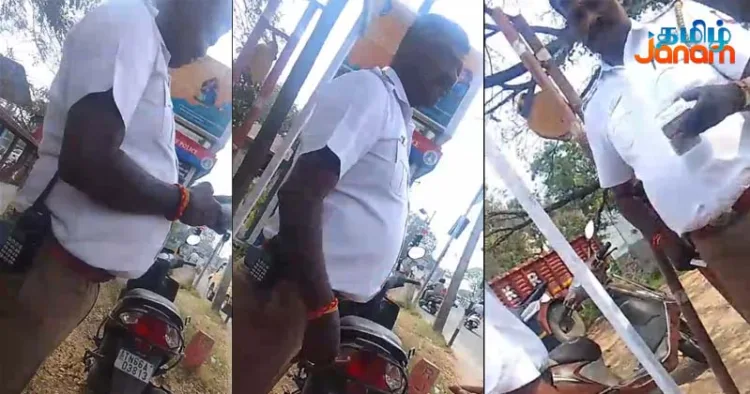 அபராதத் தொகையை ஆன்லைன் மூலம் செலுத்துவதாக ஓட்டுநர் கூறியபோது, ஆன்லைனில் அபராதம் செலுத்துவது செல்லாது, தங்களது இயந்திரத்தில்தான் அபராதம் கட்ட வேண்டும் என போக்குவரத்து காவலர் அடாவடியில் ஈடுபட்டது, இணையத்தில் வெளியாகி உள்ளது.