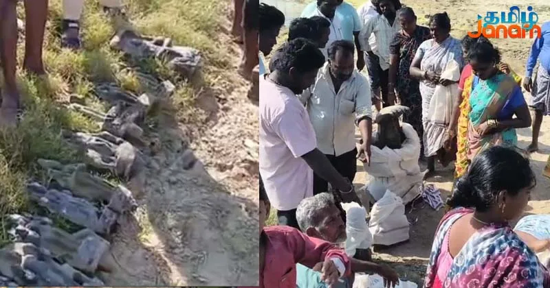 கொசஸ்தலை ஆற்றில் தண்ணீர் வடிந்த நிலையில், அனைத்து சிலைகளும் பொதுமக்கள் கண்களில் தென்பட்டுள்ளன.