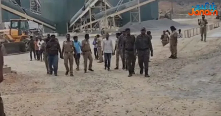 இந்த சம்பவம் குறித்து அறிந்த போலீசார் கல்குவாரிக்கு சென்று பணிகளை நிறுத்தியதோடு 4 பேரை கைது செய்தனர்.