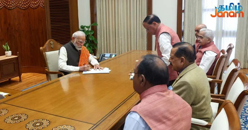 சாலை விபத்தில் சிக்கியவர்களுக்கு ஒன்றரை லட்சம் ரூபாய் வரை ரொக்கமில்லா சிகிச்சை வழங்கும் புதிய திட்டம், மகளிர் சுய உதவிக் குழுக்களின் இலக்கை 3 கோடியிலிருந்து 6 கோடியாக உயர்த்தும் திட்டம், விவசாயக் கட்டமைப்பு நிதி ஒதுக்கீட்டை ஒரு லட்சம் கோடியிலிருந்து 2 லட்சம் கோடியாக உயர்த்தும் திட்டம் ஆகிய கோப்புகளில் பிரதமர் மோடி கையெழுத்திட்டார்.