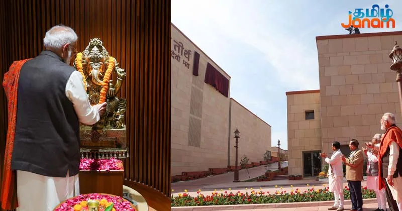 புதிய அலுவலகத்தில் விநாயகர் சிலைக்கு மாலை அணிவித்து பூஜை செய்த பிரதமர் மோடி, சில முக்கிய கோப்புகளில் கையெழுத்திட்டு பணியை தொடங்கினார்.