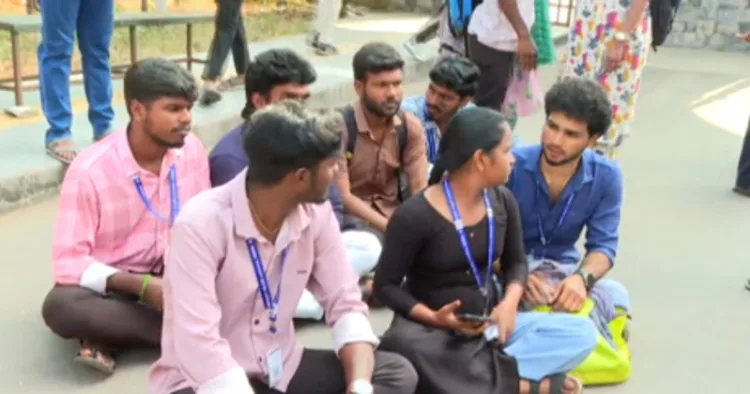 கல்லூரி நுழைவாயிலில் அமர்ந்து தர்ணாவில் ஈடுபட்டனர். அமைச்சர்கள் மரியாதை செலுத்திவிட்டு வெளியே வந்தபோது, மாணவர்கள் தர்ணாவில் ஈடுபடுவதைப் பார்த்தும், அவர்கள் என்ன காரணத்திற்காக அமர்ந்திருக்கிறார்கள் என்றுகூட விசாரிக்காமல் சென்றது, அங்கிருந்த மாணவர்களிடையே கடும் அதிருப்தியை ஏற்படுத்தியது.