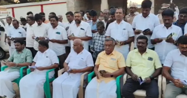 இதில், இந்து முன்னணி மாநில தலைவர் காடேஸ்வரா சுப்பிரமணியம் உட்பட ஆயிரத்திற்கும் மேற்பட்டோர் கலந்து கொண்டனர். மீண்டும் அதே பகுதியில் கோயிலை அமைக்க வலியுறுத்தி கந்த சஷ்டி கவசம் மற்றும் முருகன் பாடல்களை பாடி போராட்டத்தில் ஈடுபட்டனர்.