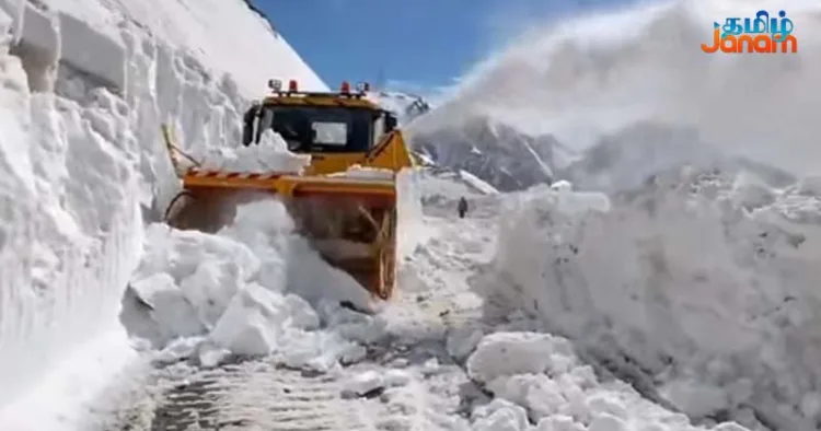 எனவே, சாலையில் தேங்கிய பனியை, ராட்சத இயந்திரங்களைக் கொண்டு அகற்றும் பணி தீவிரமாக நடைபெற்று வருகிறது.