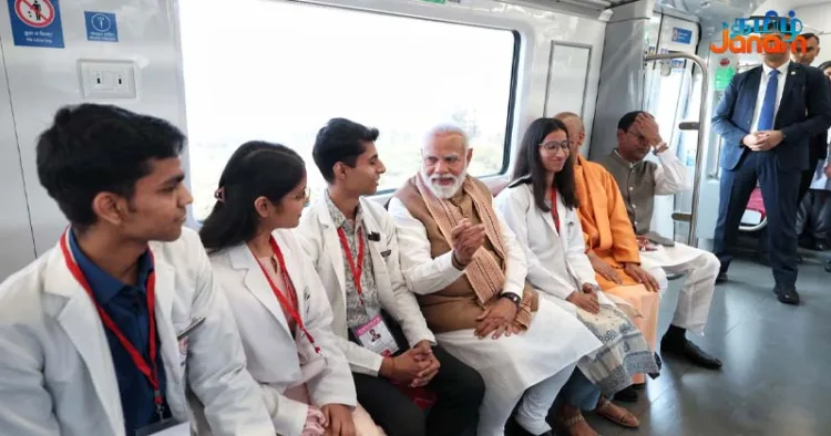 ஷதாப்தி நகர் முதல் மீரட் தெற்கு வரையில் பிரதமர் மோடி ரயிலில் பயணித்தார். அவருடன் பயணித்த அதிகாரிகள் நமோ பாரத் ரயில் திட்டம் குறித்து விரிவான விளக்கம் அளித்தனர்.