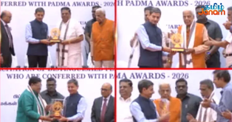 பத்ம விருது பெற்ற தமிழகத்தை சேர்ந்த பிரபலங்களுக்கு சென்னை கிண்டியில் உள்ள மக்கள் மாளிகையில் பாராட்டு விழா நடைபெற்றது. பத்ம பூஷண் விருது பெற்ற எஸ்.கே.எம். மயிலானந்தன் மற்றும் கள்ளிப்பட்டி ராமசாமி பழனிசாமி, பத்மஸ்ரீ விருது பெற்ற வி. காமகோடி, சிவசங்கரி, ஹெச்.வி. ஹண்டே, ரஞ்சனி மற்றும் காயத்ரி, புண்ணியமூர்த்தி நடேசன், திருவாரூர் பக்தவத்சலம், ஓதுவார் திருத்தணி சுவாமிநாதன், கே. ராமசாமி, ராஜஸ்தபதி காளியப்ப கவுண்டர் மற்றும் ஆர். கிருஷ்ணன் ஆகியோருக்கு சால்வை அணித்து ஆளுநர் கவுரவித்தார்