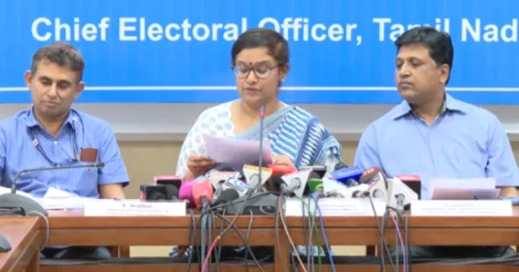 சென்னை தலைமைச் செயலகத்தில் செய்தியாளர்களை சந்தித்த தலைமை தேர்தல் அதிகாரி அர்ச்சனா பட்நாயக்,எஸ்.ஐ.ஆர் பணிகளுக்கு பின் தயாரிக்கப்பட்ட இறுதி வாக்காளர் பட்டியலை வெளியிட்டார்.