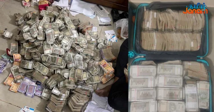 புவனேஸ்வரில் உள்ள அவரது குடியிருப்பில் சோதனை நடத்திய அதிகாரிகள் அதிர்ச்சியடைந்தனர். அங்குள்ள டிராலி பைகள் மற்றும் அலமாரிகளுக்குள் கட்டுக்கட்டாகப் பணம் மறைத்து வைக்கப்பட்டிருந்தது.