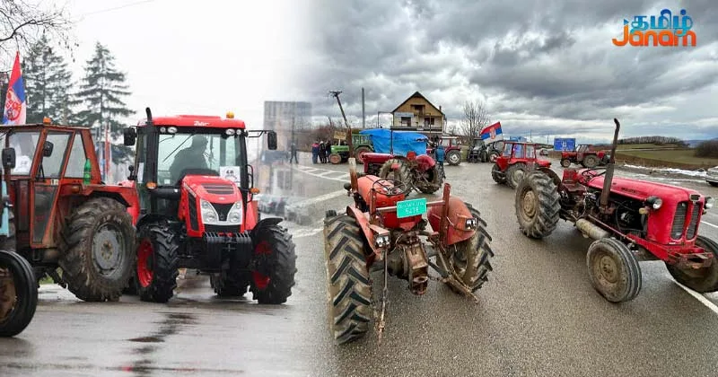 செர்பியாவில் விவசாய மானியங்களை உயர்த்தக் கோரி விவசாயிகள் 50-க்கும் மேற்பட்ட முக்கிய நகரங்களில் டிராக்டர்களை நிறுத்தி சாலைகளை முடக்கி உள்ளனர்.