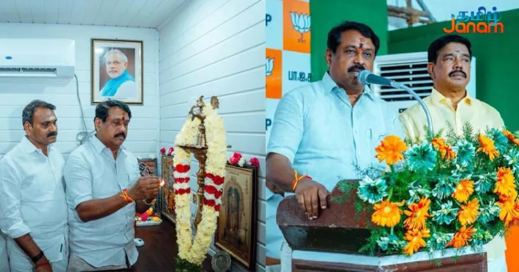 பாஜக தேர்தல் அலுவலகம் சென்னை அமைந்தகரையில் உள்ள அய்யாவுமகாலில் திறந்து வைக்கப்பட்டது. பாஜக மூத்த தலைவர் பொன்.ராதாகிருஷ்ணன் இதனை திறந்து வைத்தார். இந்த நிகழ்வில் மத்திய அமைச்சர் எல்.முருகன், பா.ஜ.க. மேலிட இணை பொறுப்பாளர் சுதாகர் ரெட்டி, பாஜக மாநில தலைவர் நயினார் நாகேந்திரன், பா.ஜ.க.தேசிய மகளிர் அணி தலைவர் வானதி சீனிவாசன், பாஜக மூத்த தலைவர் தமிழிசை சௌந்தரராஜன் உள்ளிட்டோர் கலந்து கொண்டனர்.
