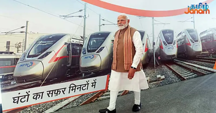 புது டெல்லி மற்றும் மீரட்டை இணைக்கும் நாட்டின் முதல் பிராந்திய விரைவு ரயில் போக்குவரத்து வழித்தடத்தை பிரதமர் மோடி நாட்டுக்கு அர்ப்பணித்துள்ளார். இதன் மூலம் ஒரே நேரத்தில் ஒரே உள்கட்டமைப்பைப் பயன்படுத்தி இரண்டு ரயில் சேவைகள் தொடங்கப்பட்டுள்ளன.