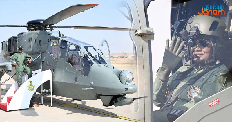 குடியரசுத் தலைவர் திரெளபதி முர்மு, உள்நாட்டில் தயாரிக்கப்பட்ட பிரசந்த் இலகுரக போர் ஹெலிகாப்டரில் துணை விமானியாக பயணித்தார்.