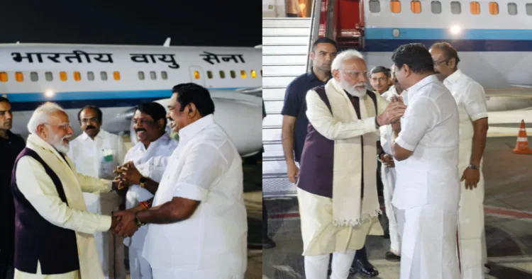 இதில் பங்கேற்பதற்காக தனி விமானம் மூலம் பிரதமர் மோடி நேற்று சென்னை வந்தடைந்தார். அவருக்கு ஆளுநர் ஆர்.என்.ரவி, அதிமுக பொதுச் செயலாளர் எடப்பாடி பழனிசாமி, பாஜக மாநில தலைவர் நயினார் நாகேந்திரன், மத்திய அமைச்சர் எல்.முருகன் உள்ளிட்டோர் வரவேற்பு அளித்தனர்.