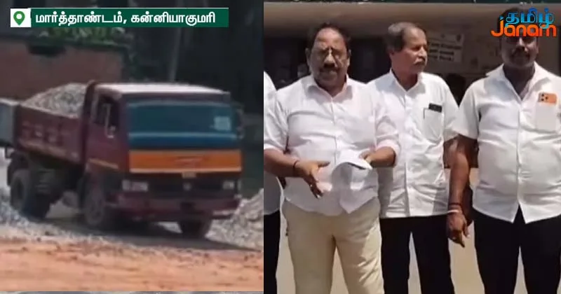 கன்னியாகுமரி மாவட்டம் மார்த்தாண்டம் அருகே, நீதிமன்ற வழக்கு உள்ள தனியார் இடத்தில் அனுமதியின்றி ஜல்லி, பாறைப்பொடிகளை கொட்டி, தனிநபர் ஒருவர் குடோன் போன்று செயல்படுத்தி வருவதாக வணிகர் சங்கம் புகார் தெரிவித்துள்ளது.