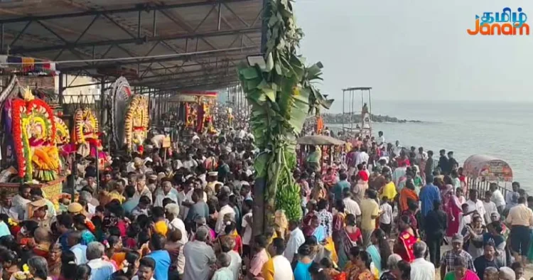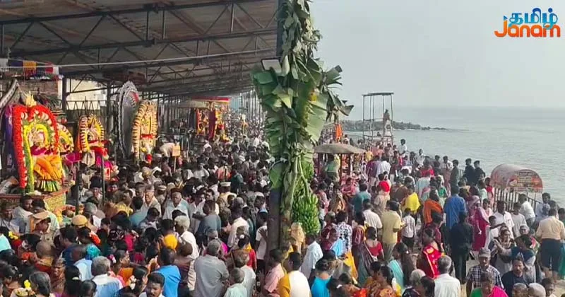 புதுச்சேரி கடற்கரை பகுதியில் உற்சவ மூர்த்திகளின் தீர்த்தவாரி நிகழ்ச்சியில் லட்சக்கணக்கான பக்தர்கள் கலந்து கொண்டு சாமி தரிசனம் செய்தனர்