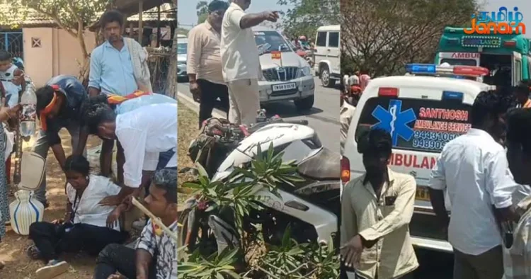 விஜய் வேண்டுகோளை புறந்தள்ளிவிட்டு, ஹெல்மெட் அணியாமலும், சாலை விதிகளை மதிக்காமலும் ஆபத்தான முறையில் பைக்கில் த.வெ.க தொண்டர்கள் பலர் பின்தொடர்ந்த நிலையில், தேசிய நெடுஞ்சாலையில் அடுத்தடுத்து விபத்து ஏற்பட்டது.