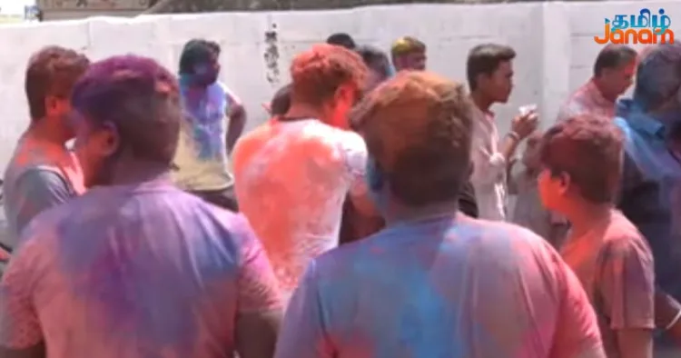 ஆண்கள், பெண்கள், சிறுவர்கள் என அனைவரும் பாகுபாடின்றி வண்ணப் பொடிகளை தூவியும், ஒருவருக்கொருவர் பூசிக்கொண்டும் ஆட்டம் பாட்டத்தில் ஈடுபட்டனர்.