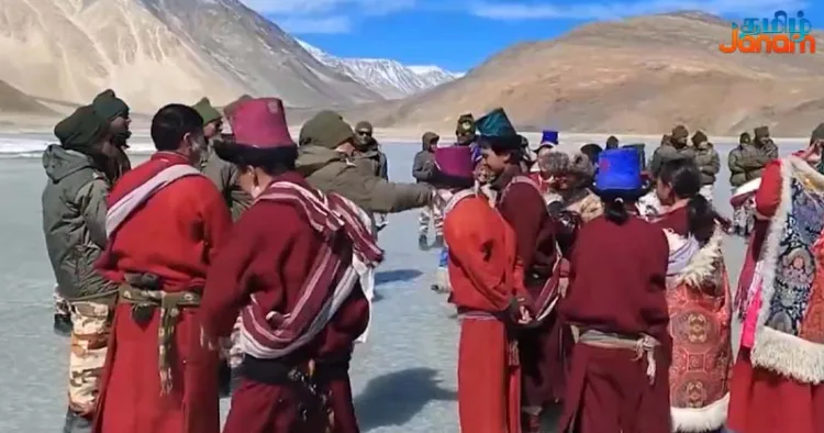 லடாக்கில் இந்தோ திபெத்திய பாதுகாப்பு படையினர், பழங்குடியின மக்களுடன் இணைந்து ஹோலி பண்டிகையை கொண்டாடினர்.