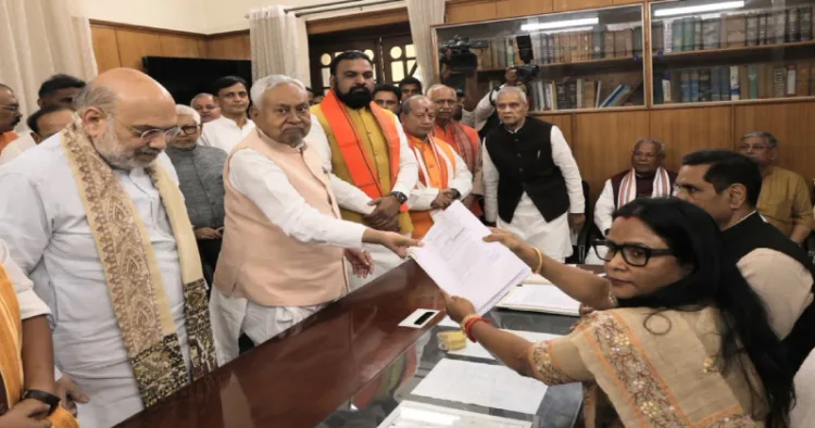 பாட்னாவில் மத்திய உள்துறை அமைச்சர் அமித்ஷா முன்னிலையில் அவர்கள் வேட்பு மனுவில் கையொப்பமிட்டனர். பின்னர் நிதிஷ் குமார் மற்றும் நிதின் நபின் வழங்கிய வேட்பு மனுக்களை தேர்தல் அதிகாரிகள் பெற்றுக் கொண்டனர்.