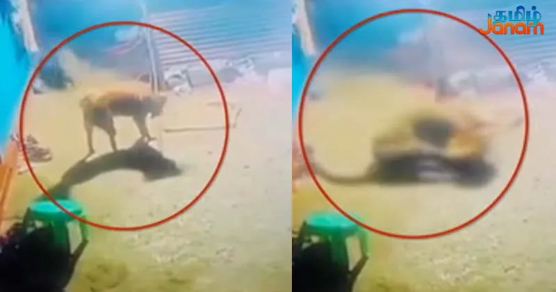 கூடலூர் அருகே கோழிபாலம் பகுதியில் உணவு தேடி குடியிருப்பு அருகே வந்த சிறுத்தை வீட்டின் முன் இருந்த வளர்ப்பு நாயை தாக்கி வேட்டையாட முயன்றது. அப்போது வளர்ப்பு நாயின் அலறல் சத்தத்தை கேட்டு அதன் உரிமையாளர் வந்து பார்த்தபோது நாயை அங்கேயே விட்டுவிட்டு கண்ணிமைக்கும் நேரத்தில் சிறுத்தை தப்பியோடியது.