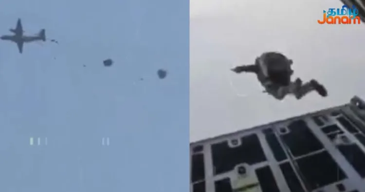 இந்திய விமானப்படையின் சக்திவாய்ந்த C-130J சூப்பர் ஹெர்குலஸ் விமானம் மூலம் பயணித்த வீரர்கள், மிக அதிக உயரத்தில் இருந்து வரிசையாக ஒருவர் பின் ஒருவராக பாராசூட் மூலம் குதித்து, எதிரியின் இலக்குகளை துல்லியமாகத் தாக்கும் வகையில் பயிற்சியை மேற்கொண்டனர்.