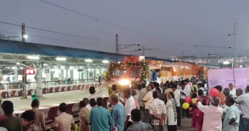 பிரதமர் மோடி தொடங்கி வைத்த மயிலாடுதுறை, காரைக்குடி விரைவு ரயிலுக்கு திருவாரூரில் மக்கள் மலர் தூவி உற்சாக வரவேற்பு அளித்தனர்.