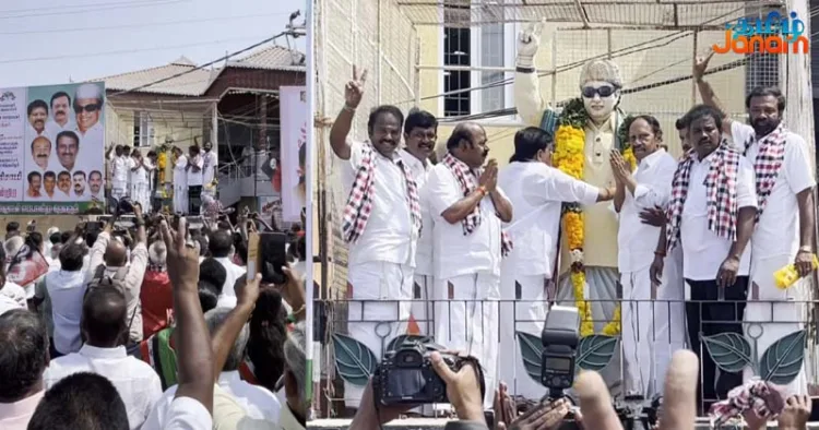 கிருஷ்ணகிரி மாவட்டம் பர்கூர் பேருந்து நிலையத்தில் இருந்து ஊர்வலமாக வந்த அவர், எம்.ஜி.ஆர் சிலைக்கு மாலை அணிவித்தார்.
