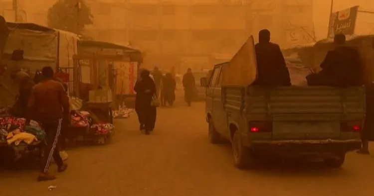 மணல் புயலால் காசா பகுதி முழுவதும் ஆரஞ்சு நிறத்தில் காட்சியளித்தது. ஏற்கனவே போரால் உருக்குலைந்த மக்கள் இயற்கையாலும் இன்னலுக்கு ஆளாகியுள்ளனர்.